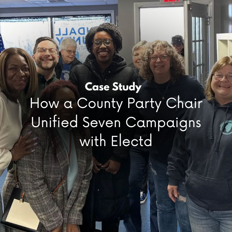 When Maria took over her county party, campaigns were siloed and data scattered. Electd’s all-in-one dashboard helped her coordinate, and track outreach, without adding more work to her team.